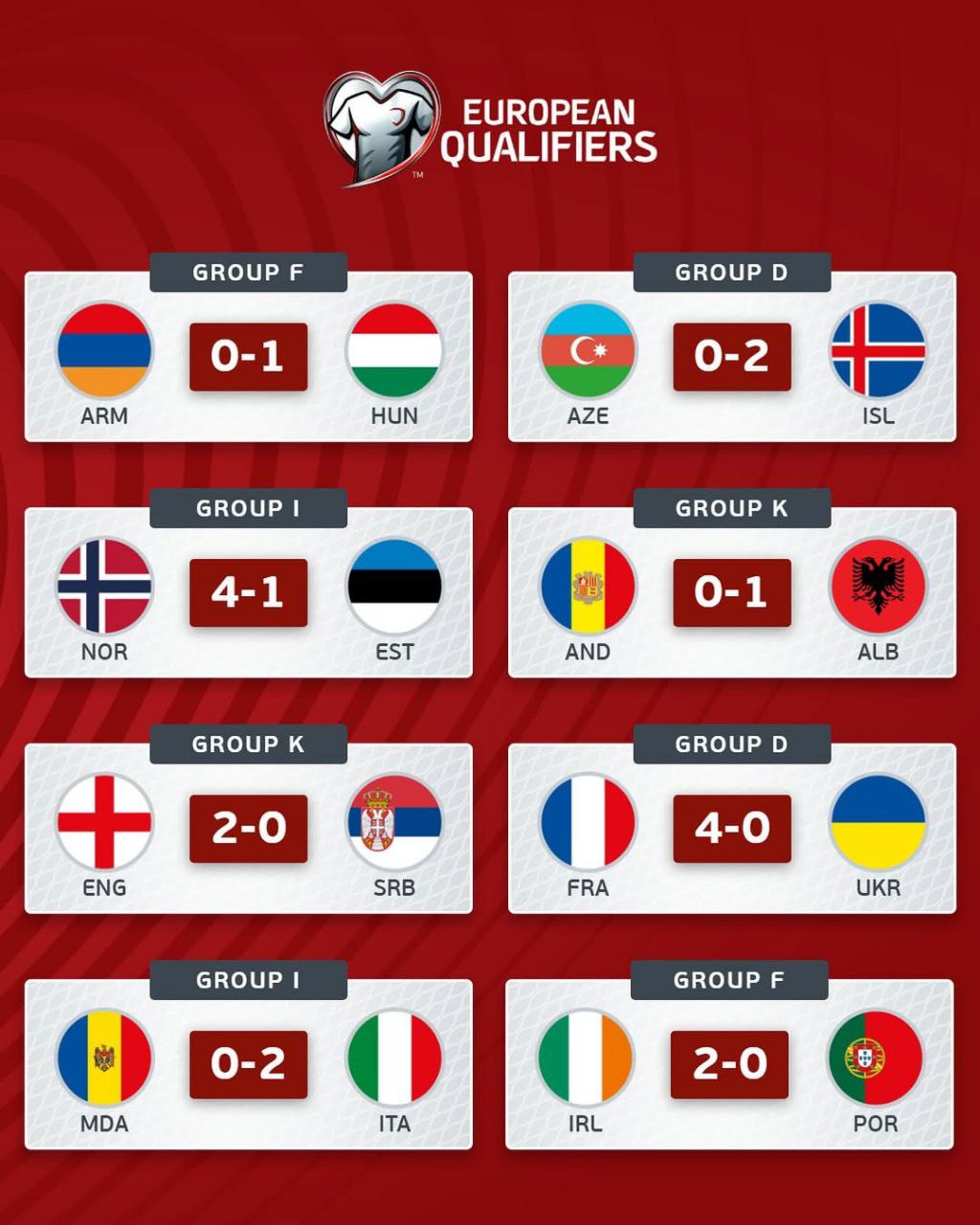 Հայաստանի ֆուտբոլի ազգային հավաքականը սեփական հարկի տակ 0-1 պարտվեց Հունգարիային և կորցրեց ԱԱ-ին մասնակցելու հնարավորությունը։ Ադրբեջանը նույնպես զրկվեց հնարավորությունից։