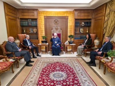 «Այսօր` Չորեքշաբթի, 8 Ապրիլ 2026֊ին, Ն.Ս.Օ.Տ.Տ Արամ Ա. Վեհափառ Հայրապետը ընդունեց լիբանանեան Ազգային Ազատ Հոսանք Կուսակցութեան նախագահ Ժըպրան Պասիլը, ընկերակցութեամբ կուսակցութեան քաղաքական դիւանի անդամներուն։
