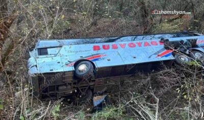 Հաղարծինում Բրյուսովի ուսանողներին տեղափոխող ավտոբուսը կիսակողաշրջված հայտնվել է անտառում