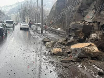 Մյասնիկյան պողոտայում ժայռաբեկորներից հսկայական քարեր են թափվել՝ հայտնվելով երթևեկելի գոտում