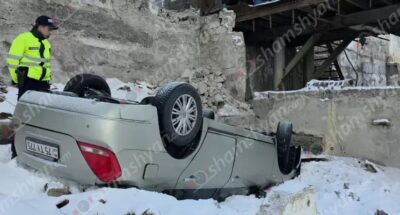«Nissan Teana»-ն բախվել է բետոնե պարսպին և մոտ 5 մետր բարձրությունից գլխիվայր շրջվել