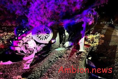 Toyota մակնիշի ավտոմեքենան բախվել է ծառին՝ կոտրել այն և գլխիվայր շրջվել․ ավտոճանապարհը դարձել է երկկողմանի փակ